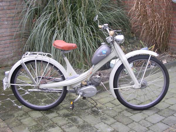 Dit was de 1e bromfiets die Ome Jan ( Jan Moolenaar) kocht. Toen hij later de NSU Quickly T kocht nam mijn oudste broer Eibert( toen hij 16 werd) deze bromfiets over. Er is een origineel kenteken wat bij de 1e bromfiets hoorde. Ik kocht deze bromfiets in Duitsland. |