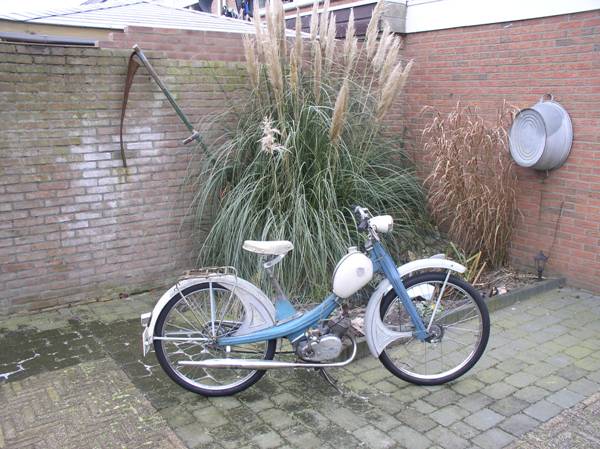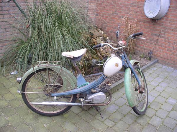 Als wrak, in Duitsland, gekocht, alleen technische restauratie uitgevoerd. Brommer ziet er nu veel beter uit. |