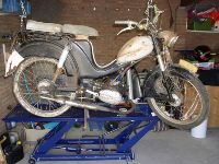 Deze bromfiets restaureer ik voor een oom zegger. Inmiddels is de bromfiets gedemonteerd en is het polijsten al begonnen. Al 2 jaar aan het zoeken naar achterspatbord en sierkappen.