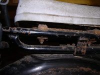 Motorsteunen schoongemaakt en de primer gezet. Bouten en moeren ontroest. Zadelklem schoongemaakt en in de primer gezet