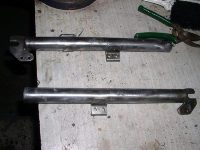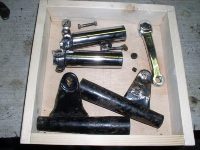 - Voorvork poten gedemonteerd. Bussen gepolijst. Poten ontroest en blank gemaakt.