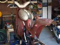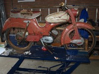80500011513 inlusief carburateur. Encarwi carburateur Bel DKW , 3 versnellingshandel cranks. 2 weken later in Duitsland een complete voorvork gekocht. Op de andere vork was gelast .. |