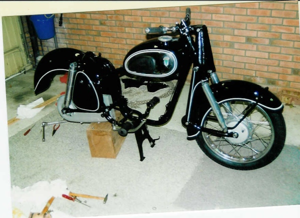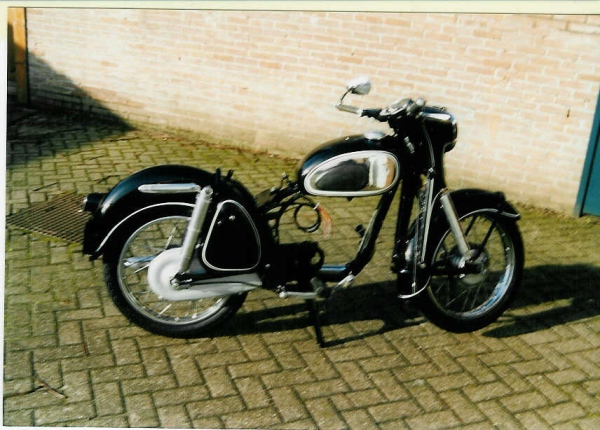 In Maasbracht gekocht was oorspronkelijk een Belgische motor, had grijze spatborden en de rest was zwart. De motor gaf veel problemen zodat er tot een totale restauratie en revisie werd overgegaan. Duurde in totaal 4 jaar. Motor is nu in nieuwstaat.